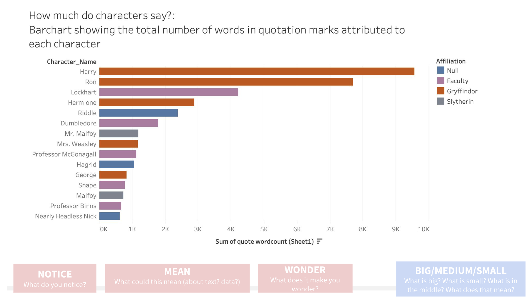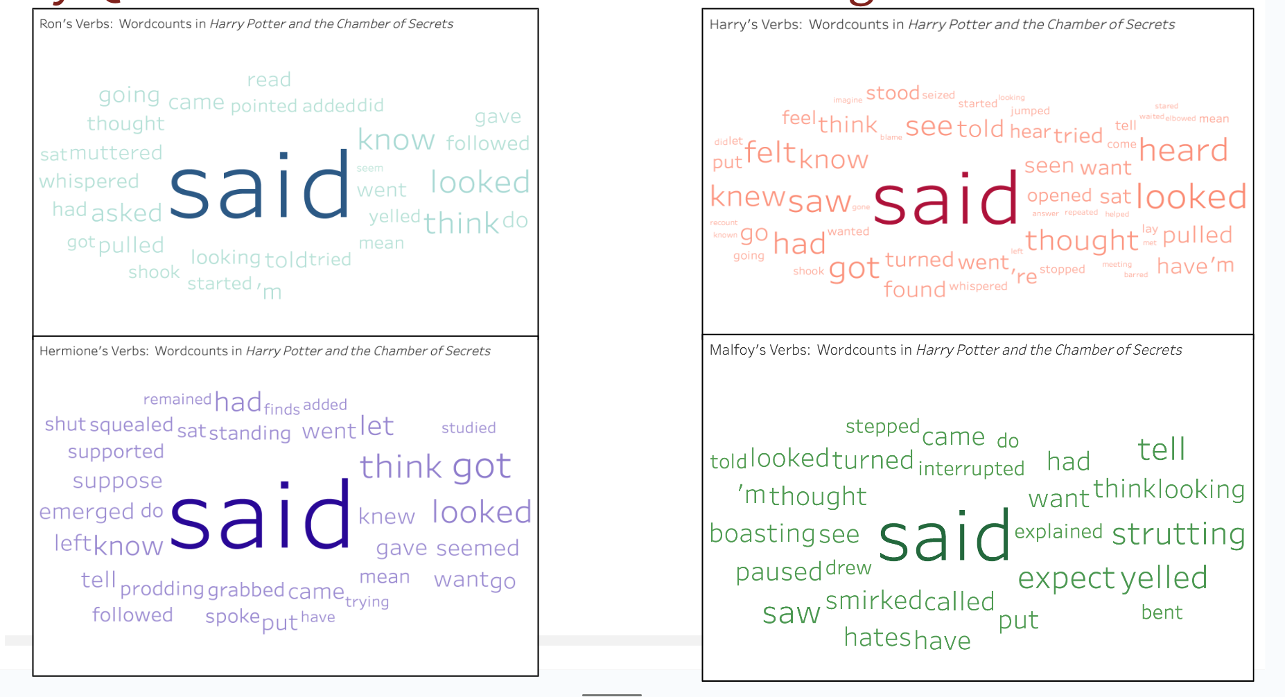 This summer, under the guidance of Professor Sarah Levine and the Graduate School of Education team, my project, “Seeing Texts Differently,” explores how data visualizations can enhance the teaching of English Language Arts (ELA) literacy and data literacy in the classroom. This project is important because it has the potential to transform the way that English Language Arts are taught in the classroom. We generate tools like word clouds and bar graphs, and then investigate how teachers can use these visualizations to help students engage with and evaluate stories, authorial choices, and data.